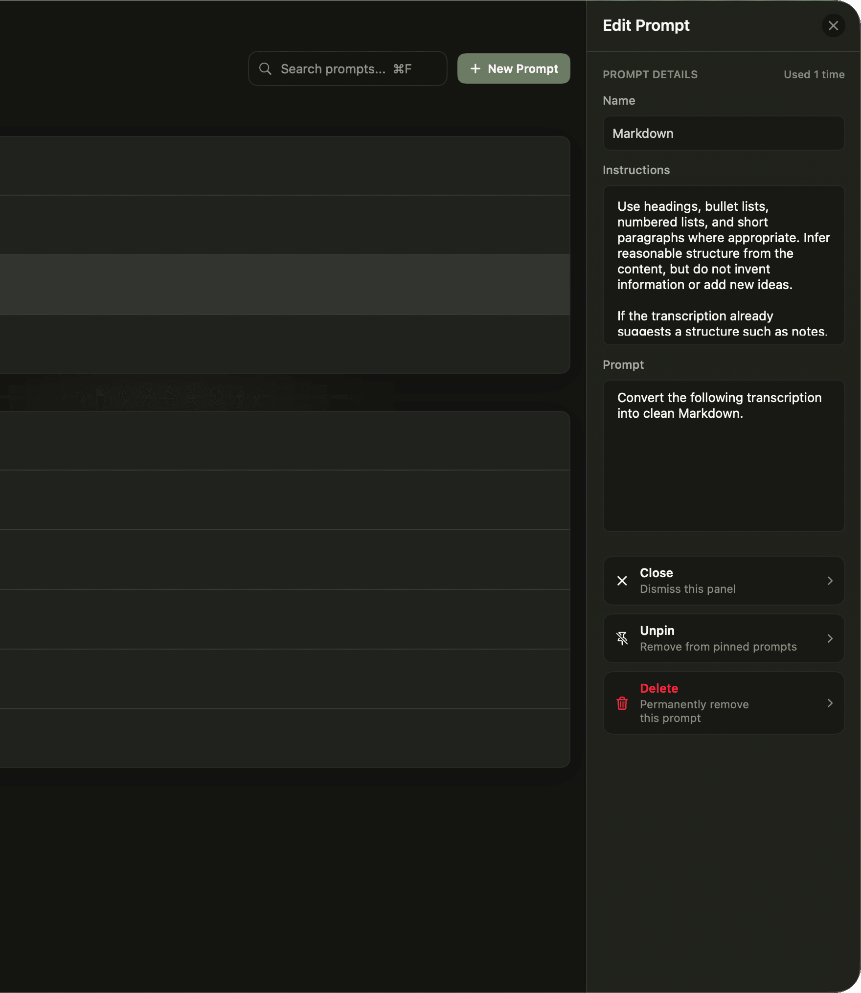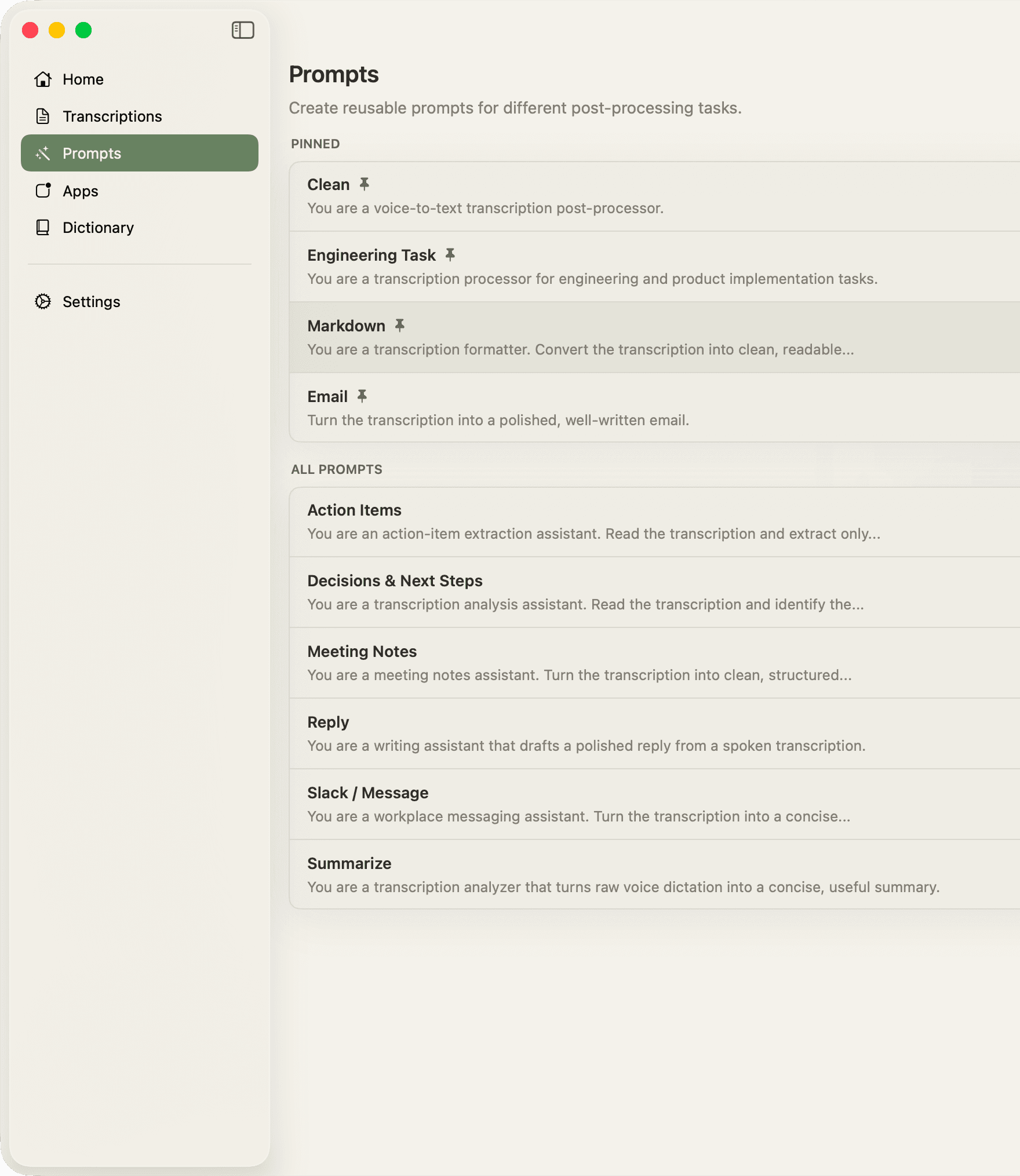Post-processing, convenient shortcuts, and history designed to make voice a natural part of how you work.