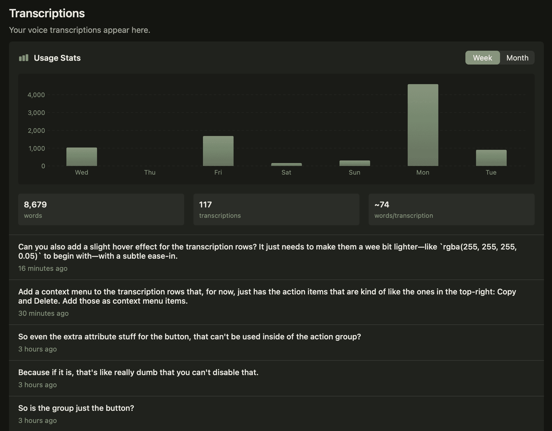 Convert speech to text in an intuitive, non-intrusive way. Manage your transcriptions and see thorough statistics aobut your usage.